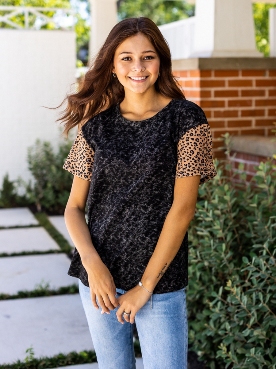 Black & Pink Floral Ruffle Short Sleeve Babydoll Top